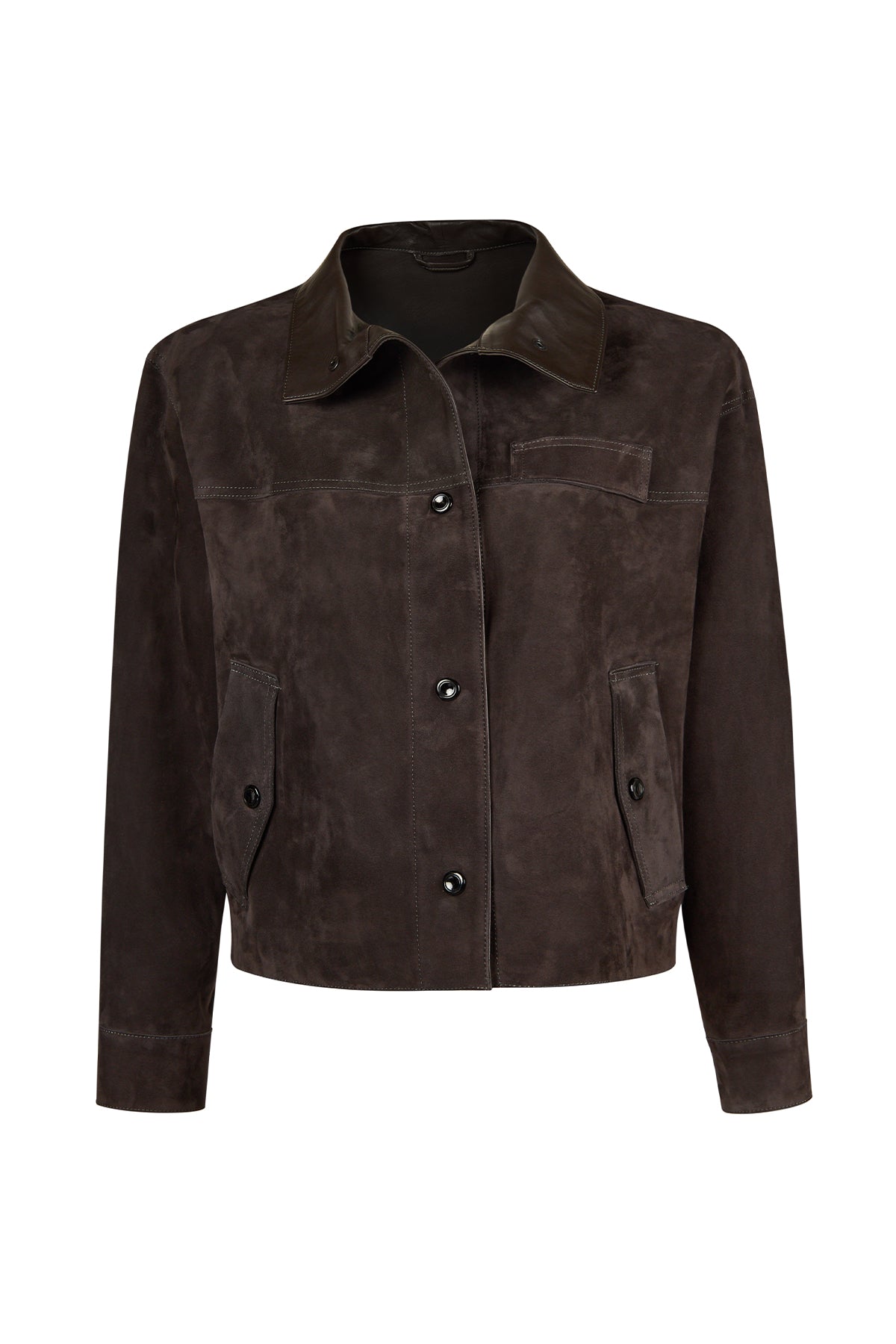 Bu koleksiyondaki teknik detaylarda süet deri yüzeyinin sade ve mat dokusu ile astarsız iç yapısı bir araya gelir; yüzeyde ek nakış, desen, metal aksesuar ya da parlaklık bulunmaz. Çıtçıtlı kapama sayesinde günlük pratiklik sağlanırken, koyu kahverengi tonunun sağladığı şık ve modern görünüm farklı kombinlerde rahatça yer alır.