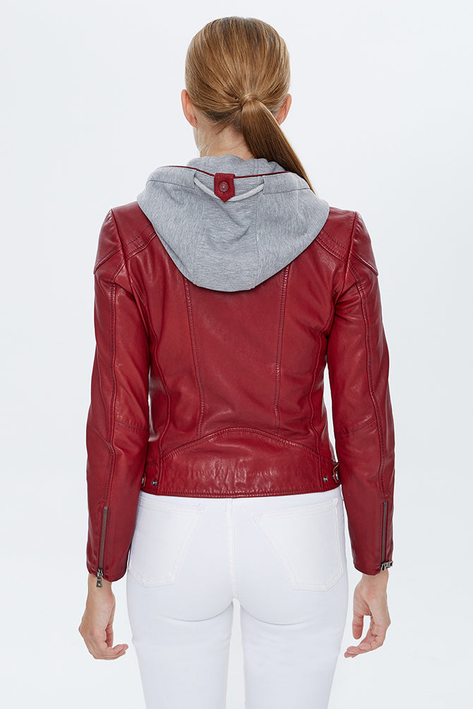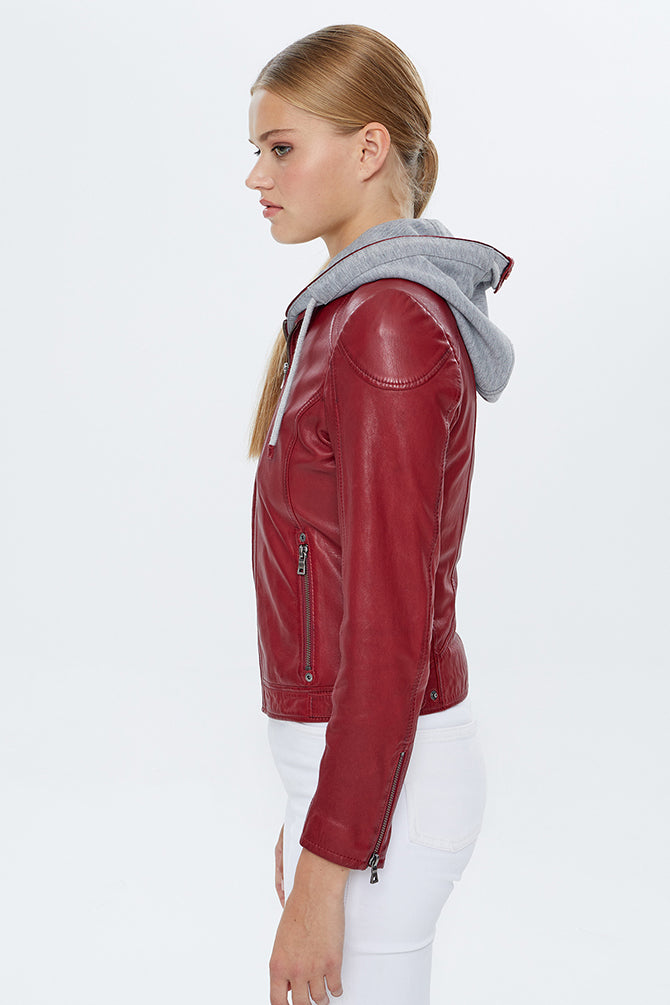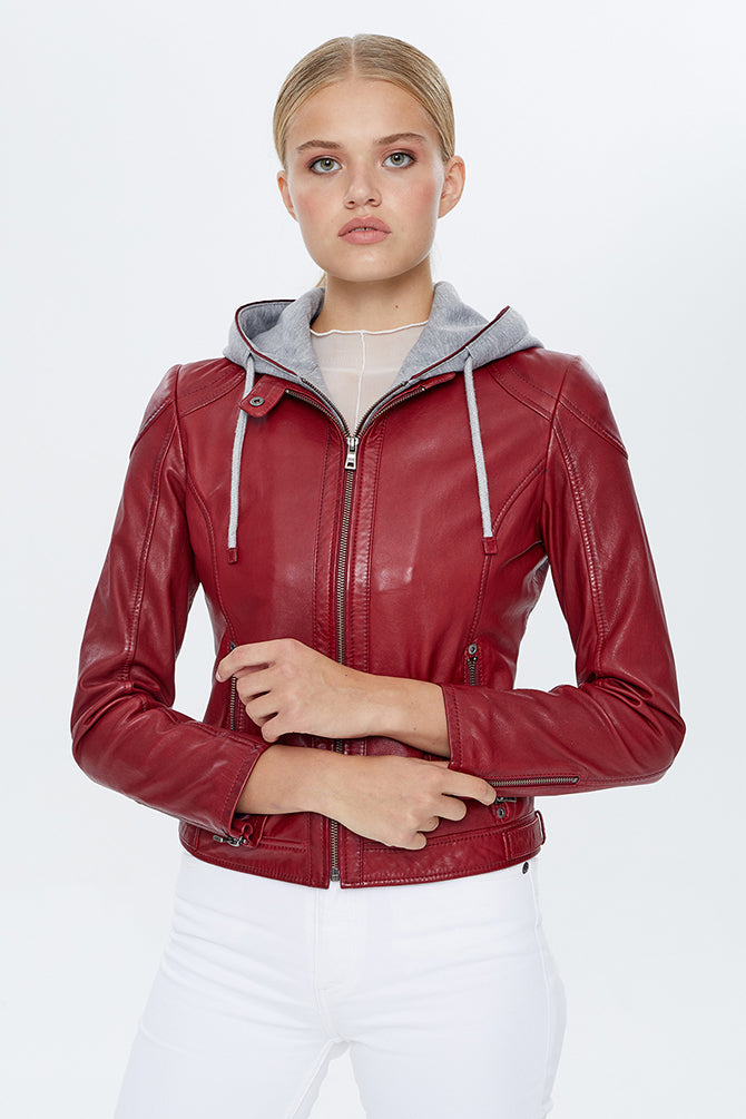 Santa Fe Kadın Kırmızı Kapüşonlu Deri Mont