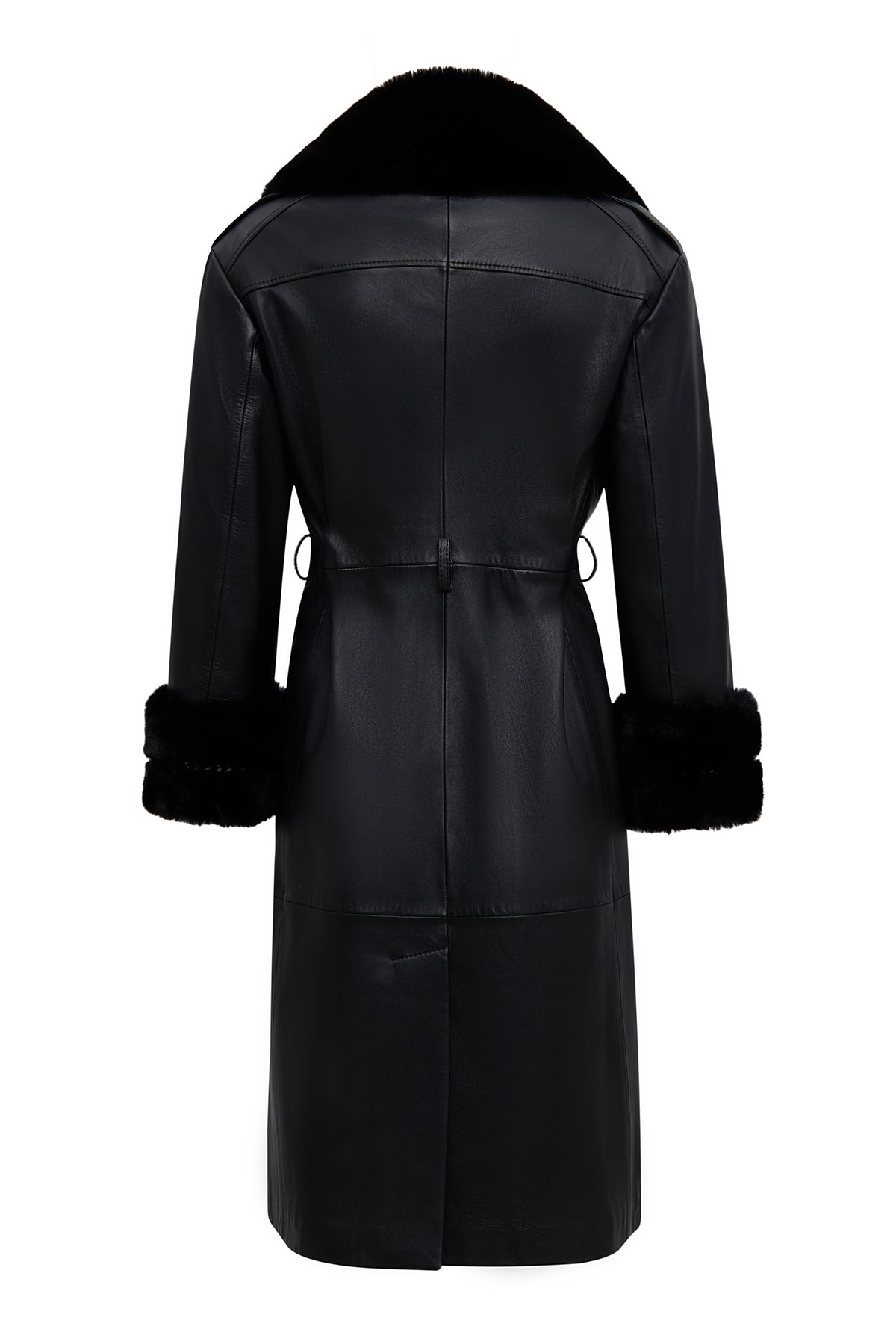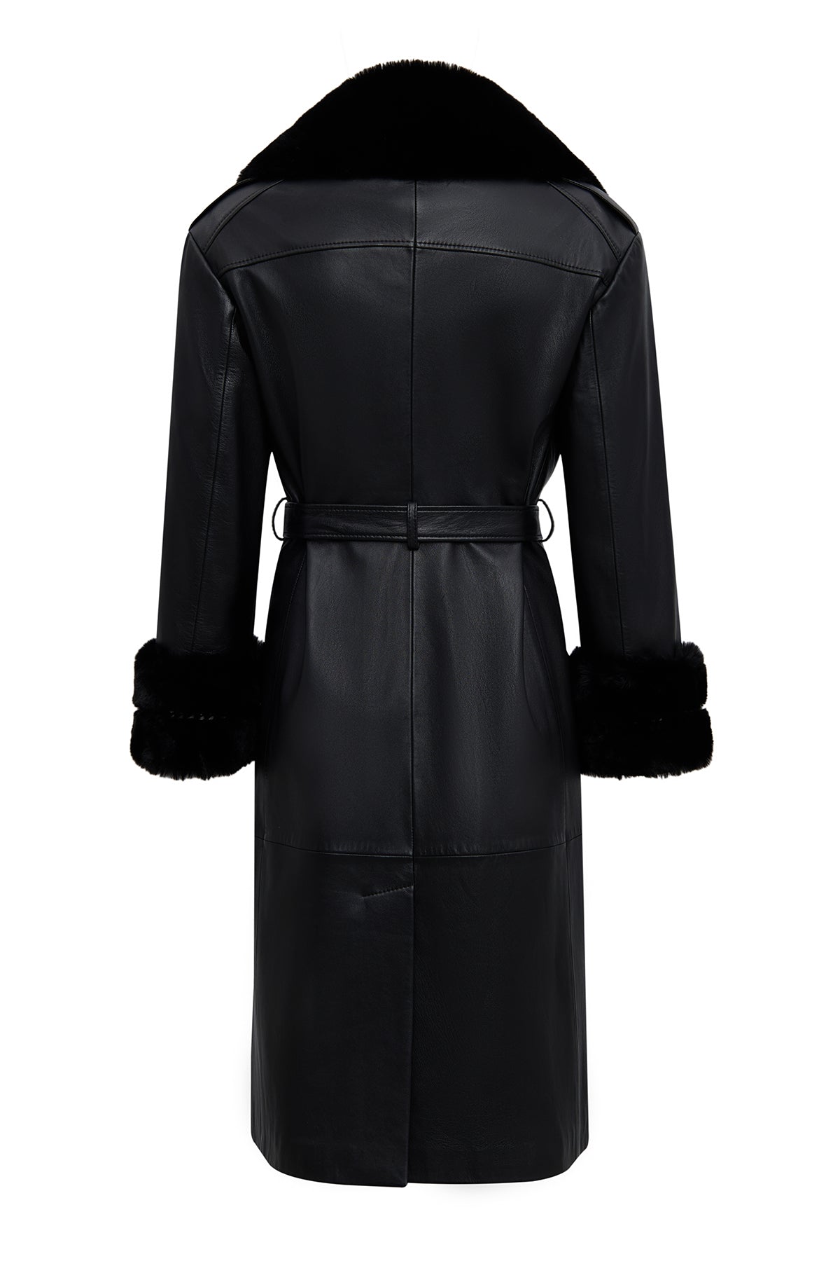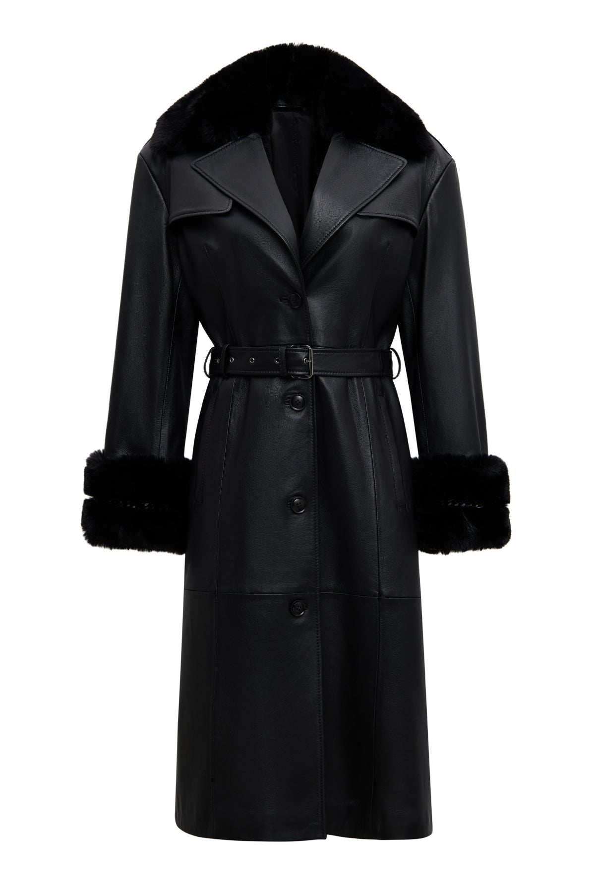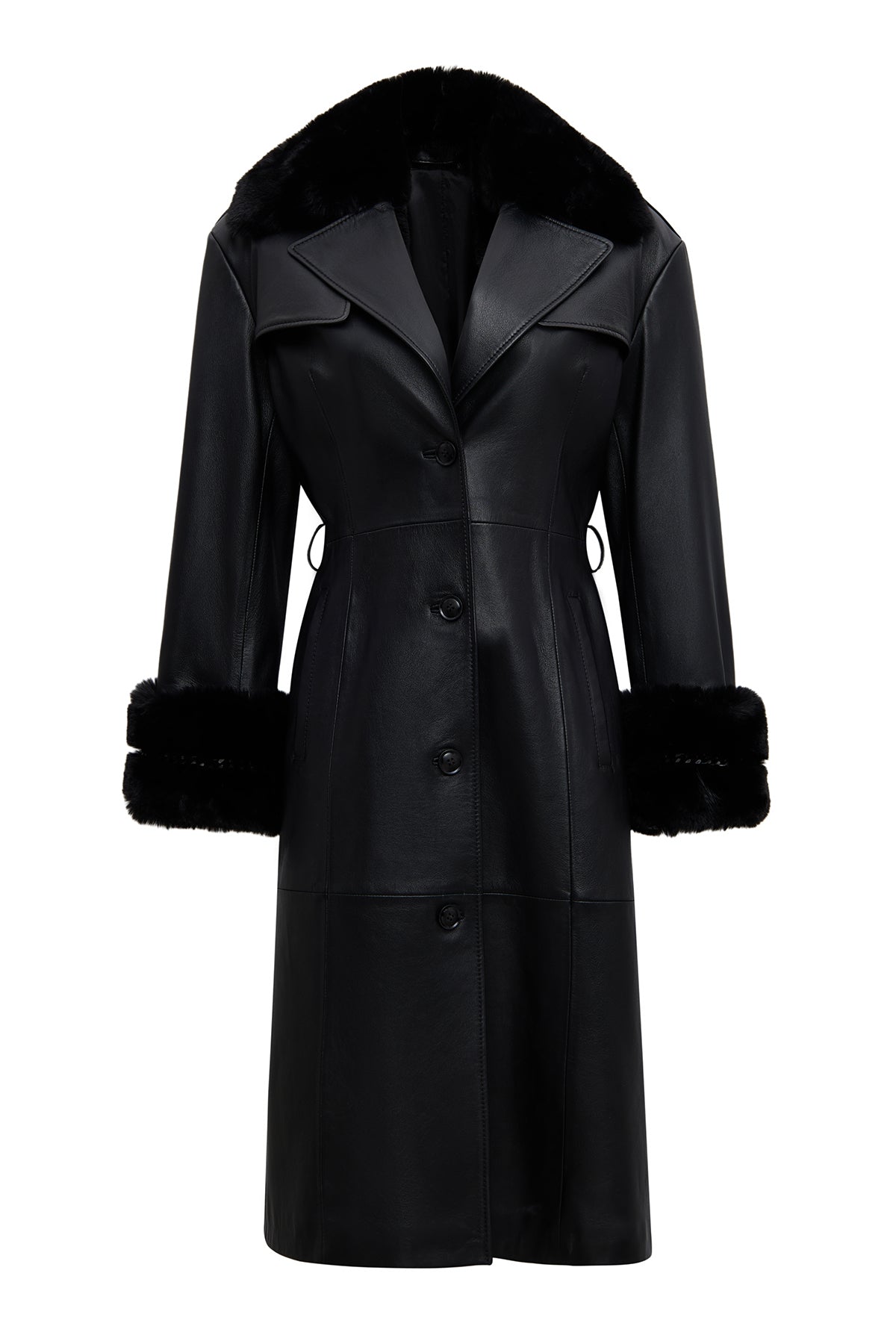 Selena Kadın Siyah Yaka Kürklü Deri Trençkot