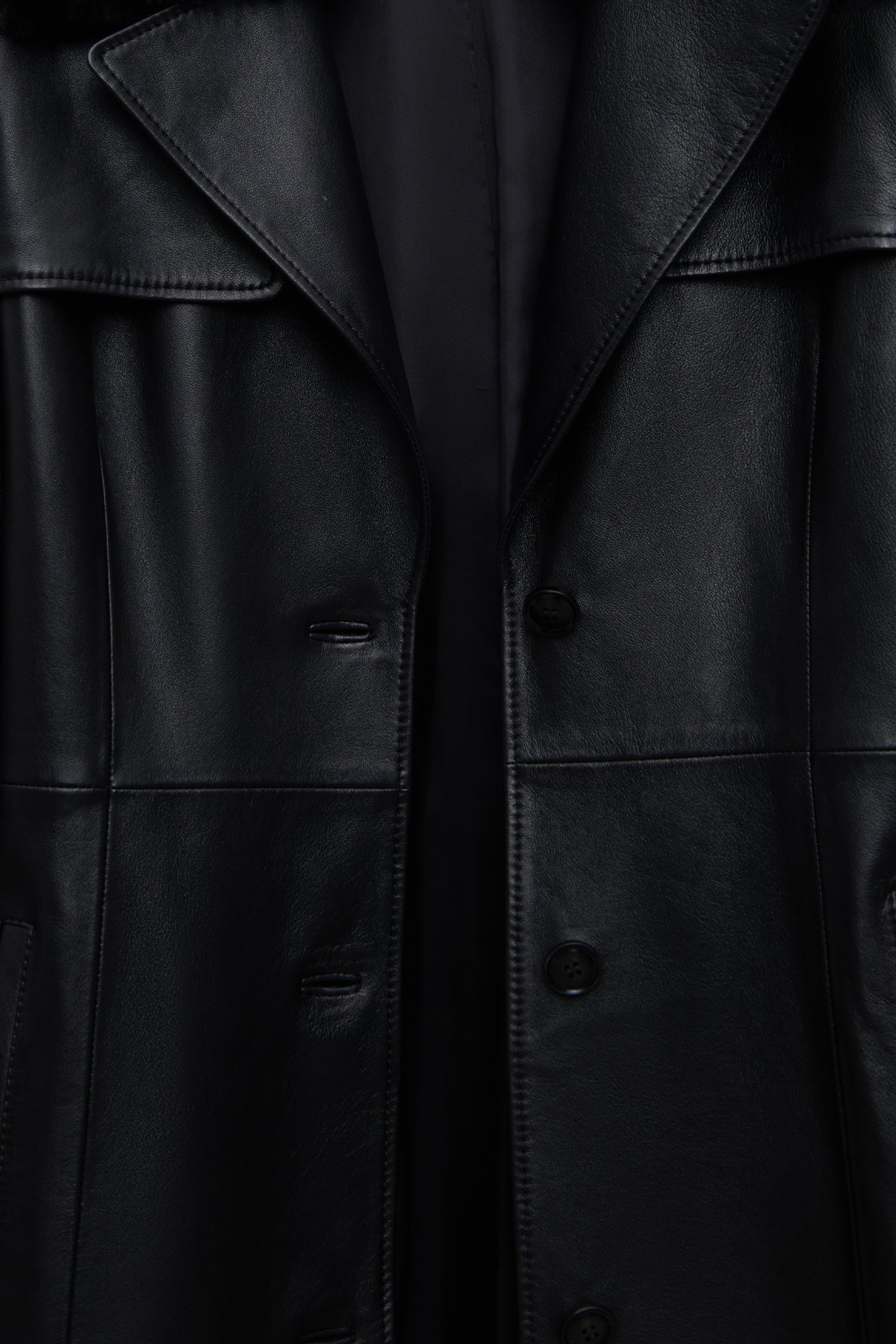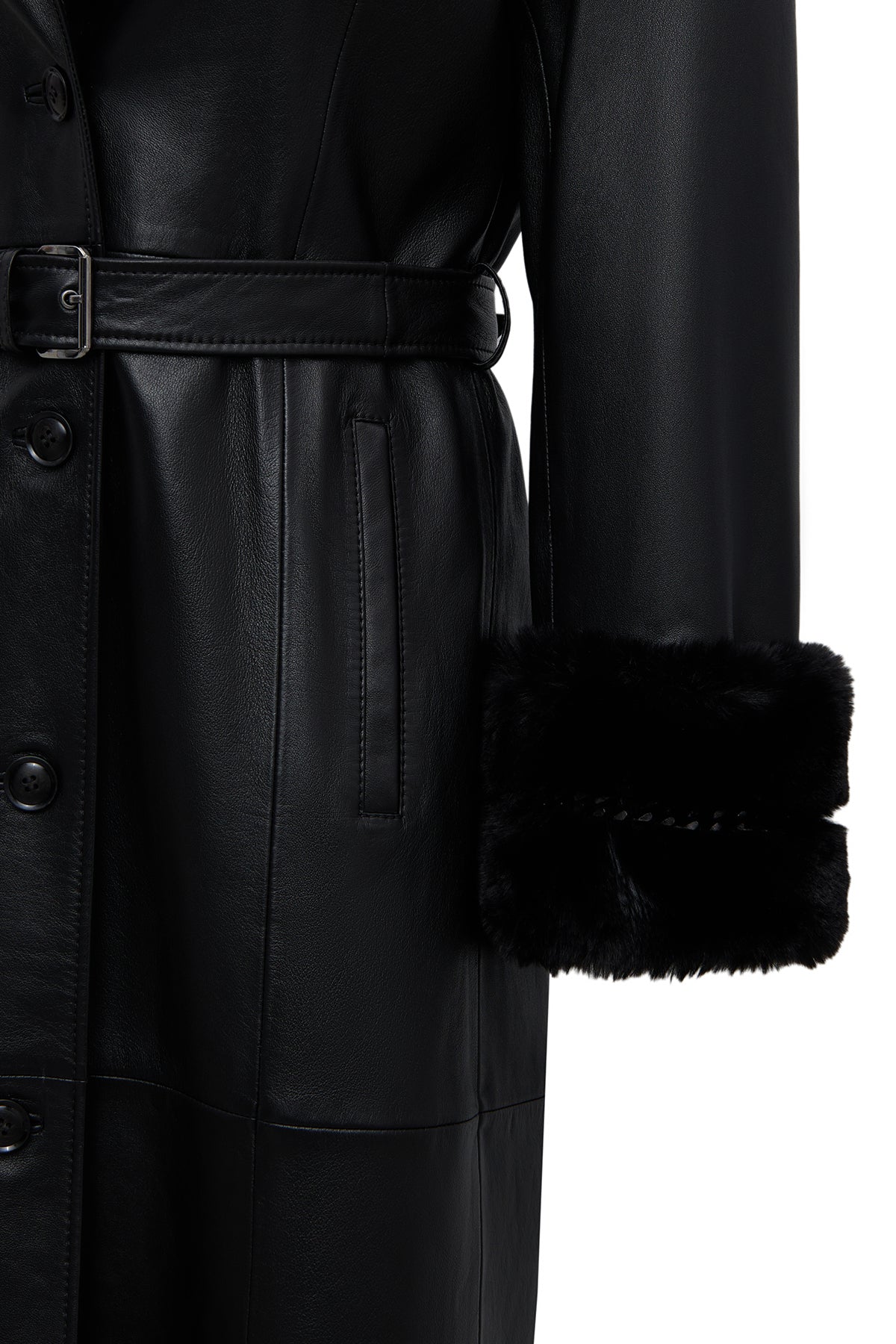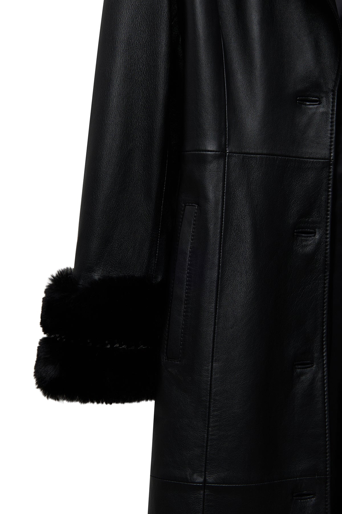 Selena Kadın Siyah Yaka Kürklü Deri Trençkot