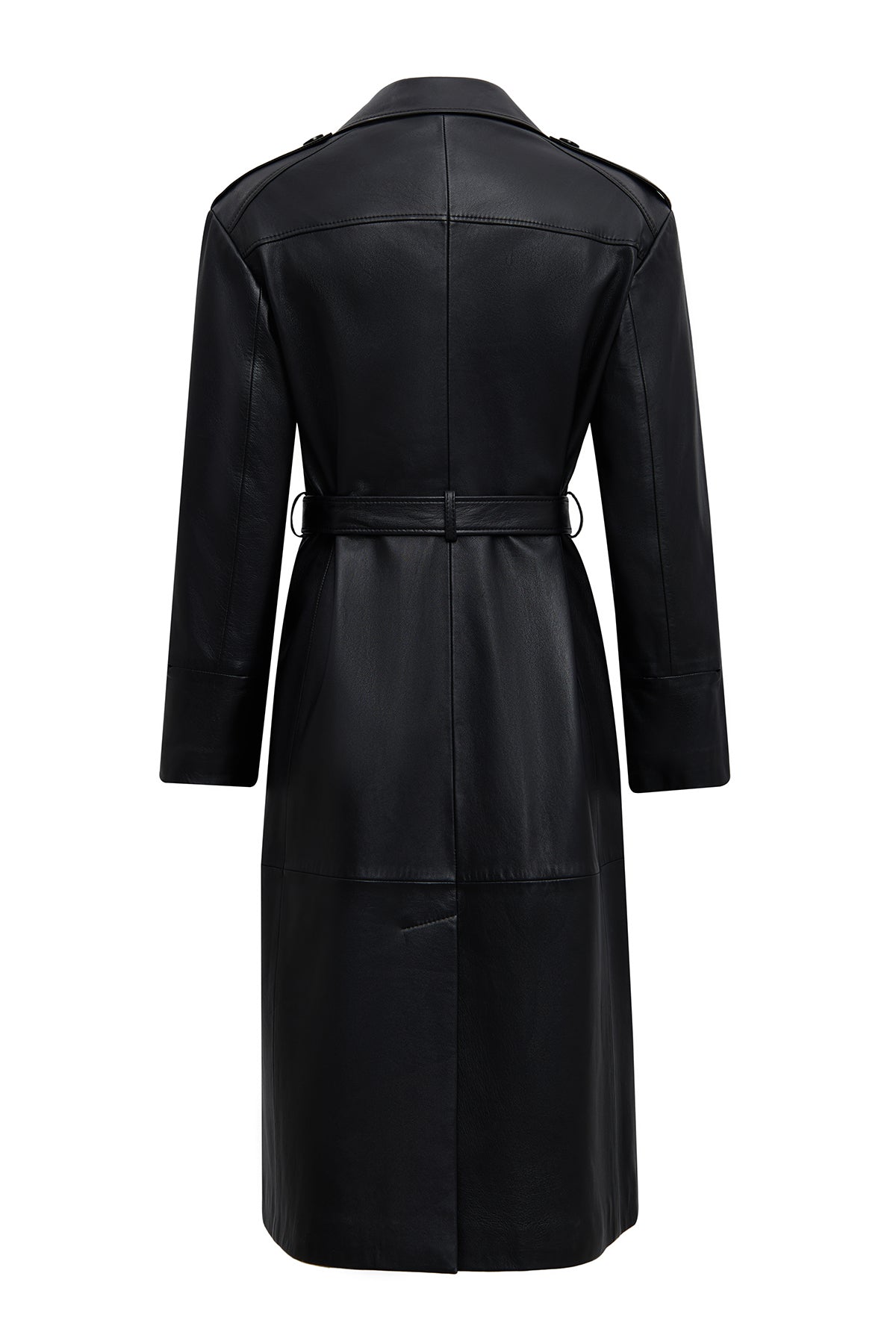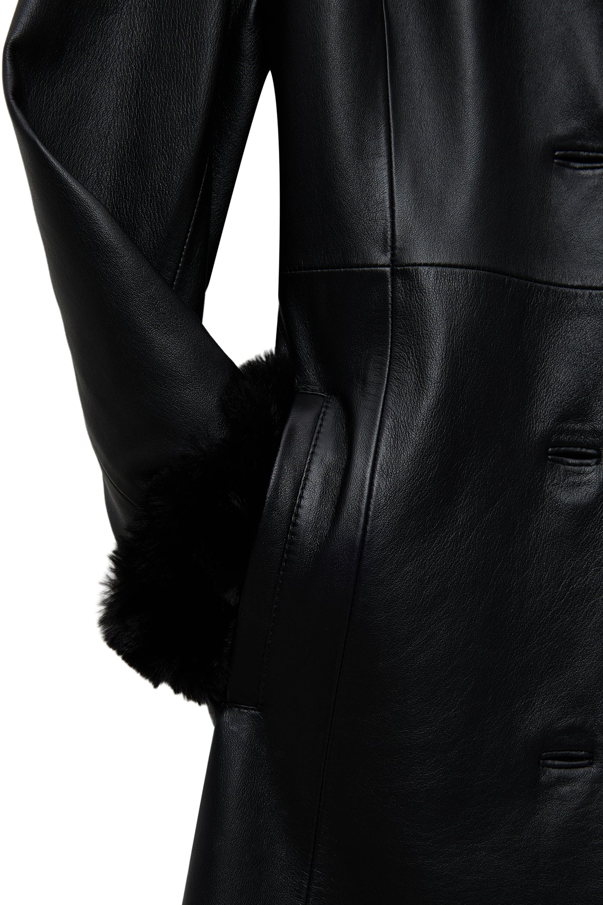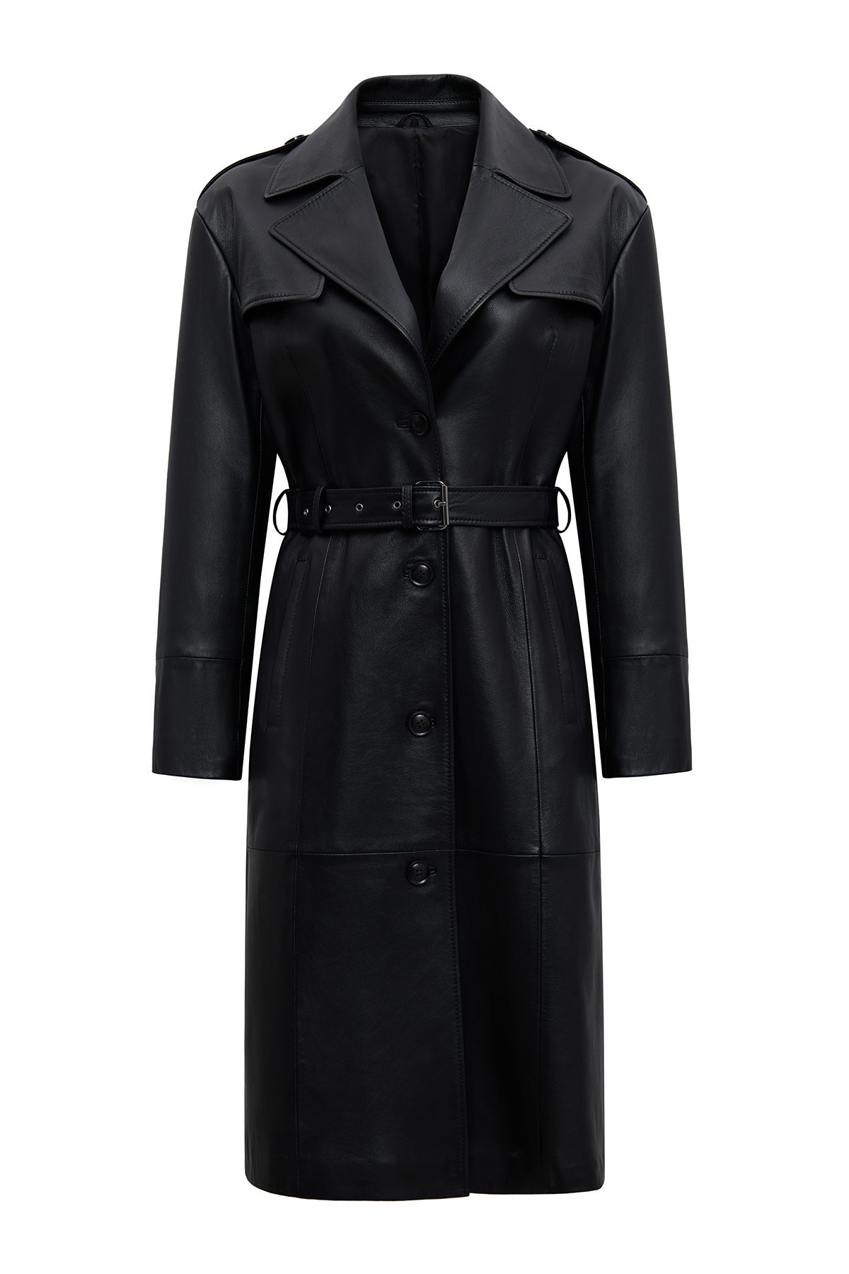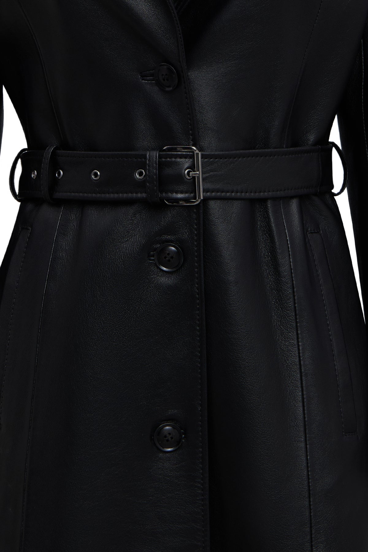 Selena Kadın Siyah Yaka Kürklü Deri Trençkot