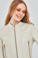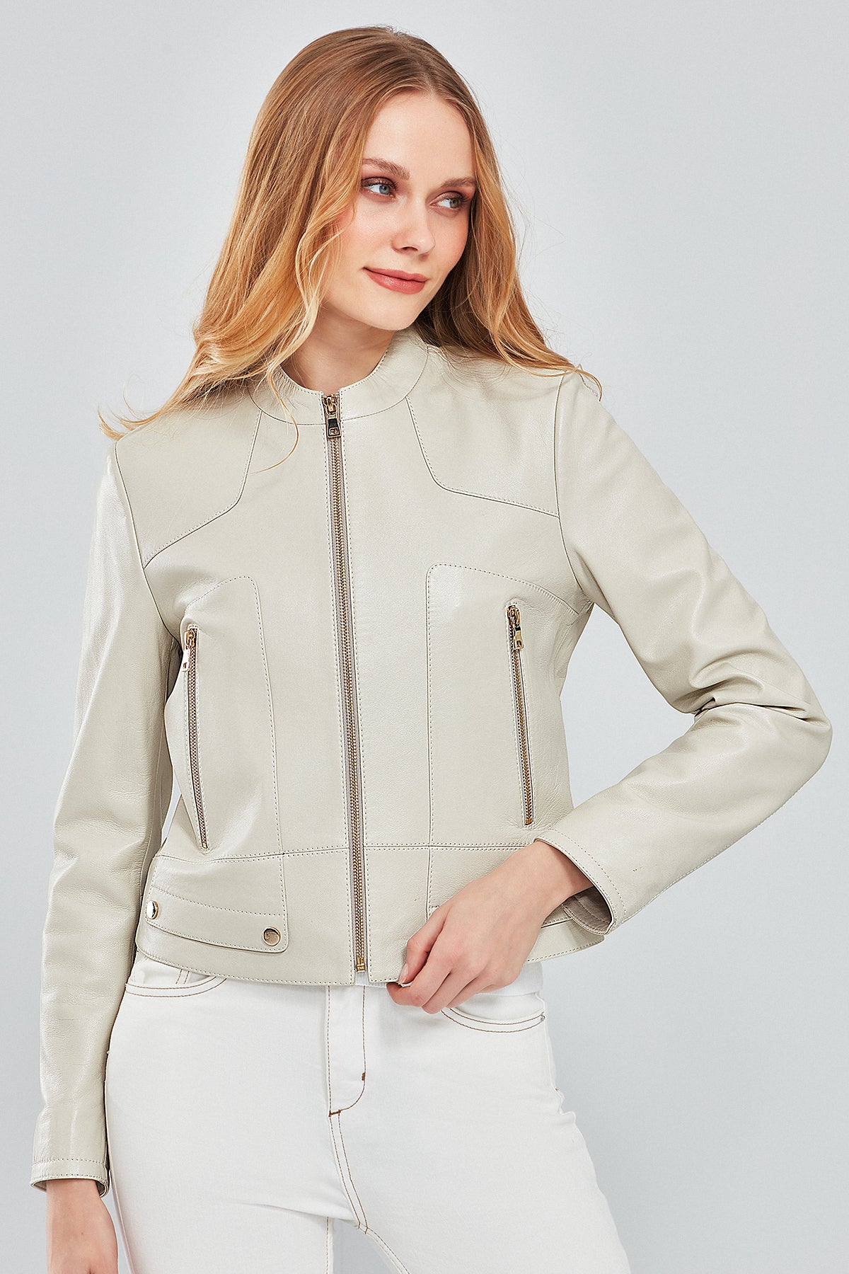 Derimod’un Zarifliği ve Şıklığı bir arada sunan Sharon Kadın Bej Deri Ceket ile tarzınızı konuşturun. Ürünün kodu: 24SGE51751M C5