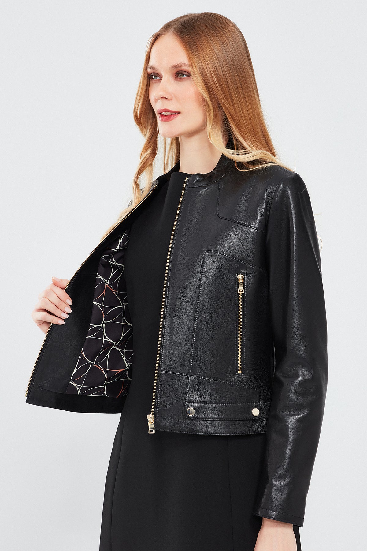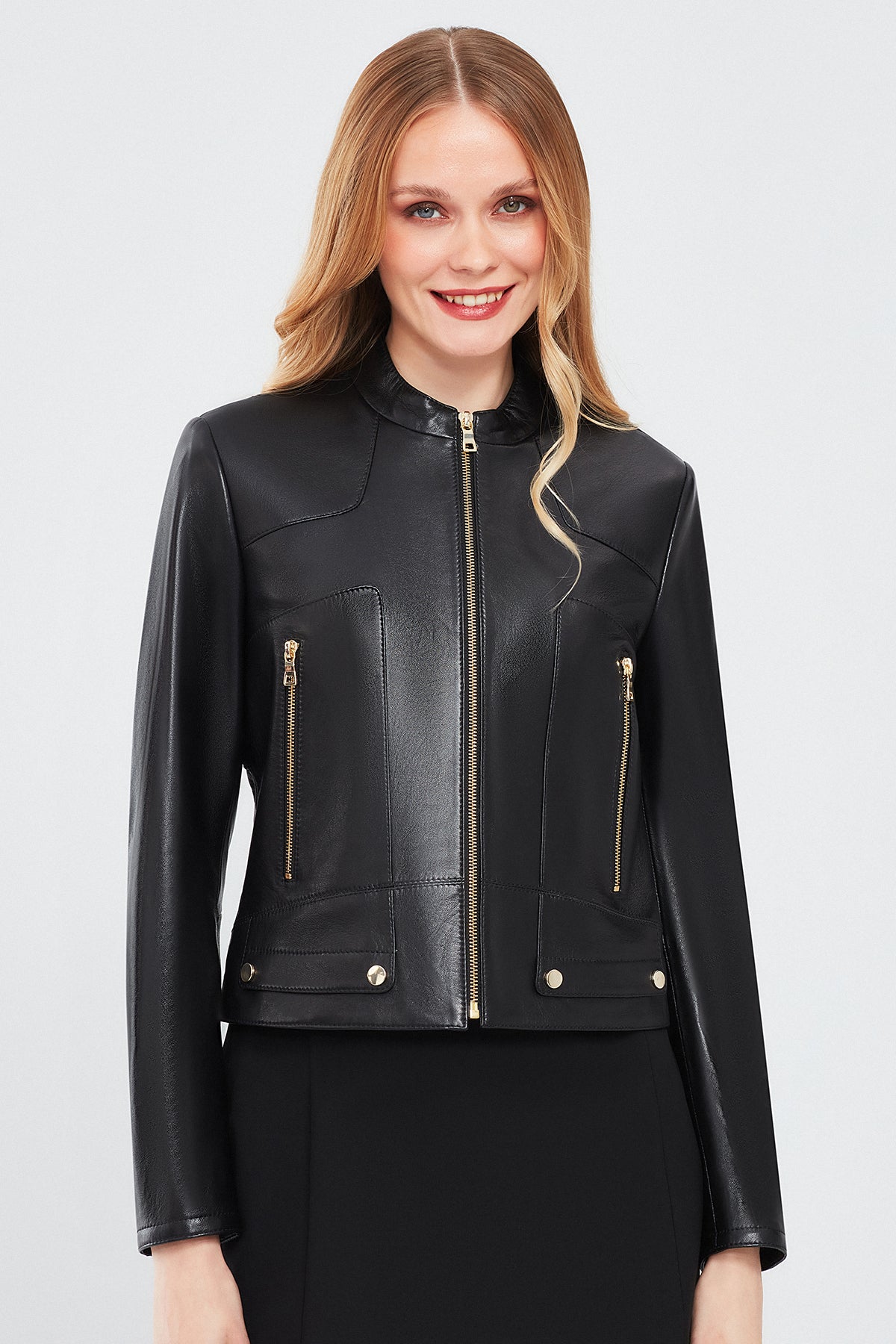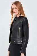 Sharon Kadın Siyah Kısa Deri Ceket, zarif ve modern tasarımı ile dikkat çekiyor. Kaliteli deri materyalden üretilen bu ceket, hem dayanıklılığı hem de şıklığı bir araya getirir. Fermuarlı kapama sistemi, pratik ve kolay bir kullanım sunar. Hakim yaka detayı, cekete modern ve şık bir hava katar. Regular kalıbı sayesinde her bedene uygun ve rahat bir giyim deneyimi sunan Sharon Kadın Siyah Kısa Deri Ceket, siyah rengi ile her türlü kıyafetle mükemmel uyum sağlar. Günlük kullanımda ve özel etkinliklerde tarzınızı yansıtacak bu deri ceketle her zaman dikkat çekici ve zarif görüneceksiniz. Ürünün kodu: 24SGE51751M 11