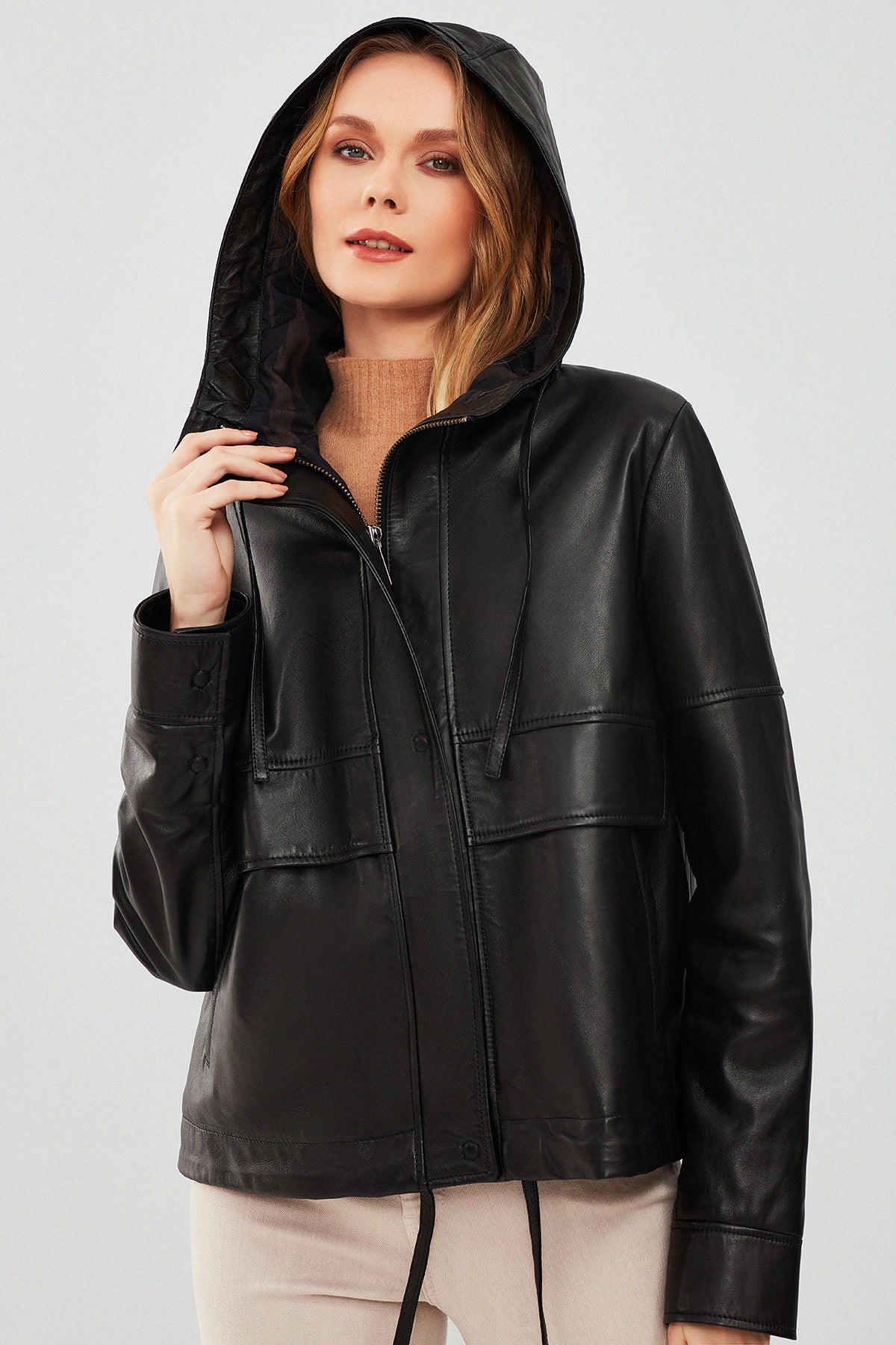 Derimod’un Zarif ve Şıklığı bir arada sunan Shelly Kadın Siyah Oversize Kapüşonlu Deri Ceket ile tarzınızı konuşturun. Ürünün kodu: 23WGD5115U4 11