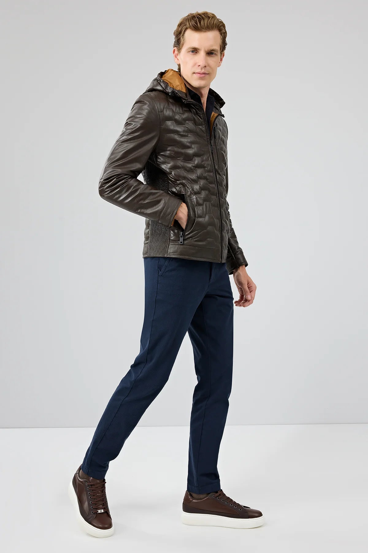 Derimod’un Zarifliği ve Şıklığı bir arada sunan Silva Erkek Kahverengi Kapüşonlu Deri Mont ile tarzınızı konuşturun. Ürünün kodu: 24WGD6552U3 IR