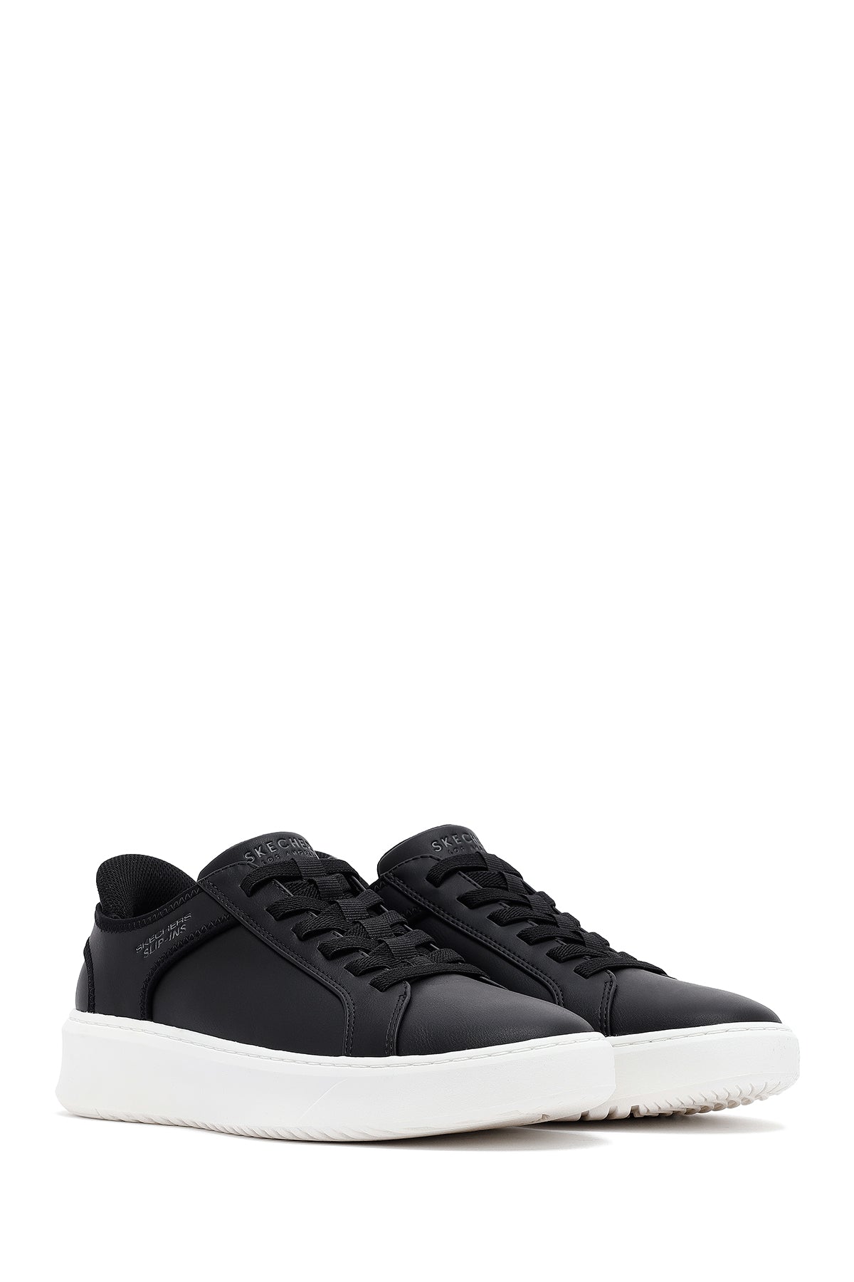 Skechers Erkek Siyah Court Break Bağcıklı Kalın Tabanlı Deri Sneaker