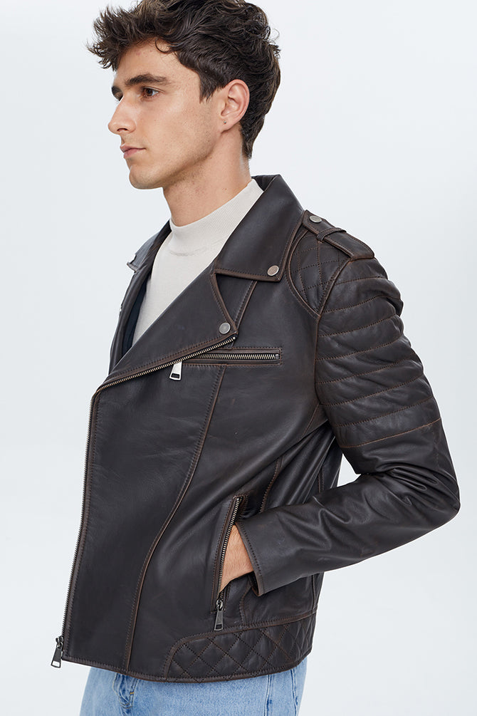 Speedy Erkek Siyah Deri Slim-Fit Biker Ceket