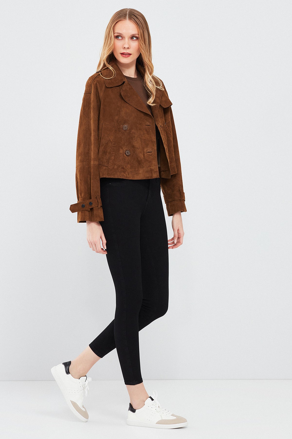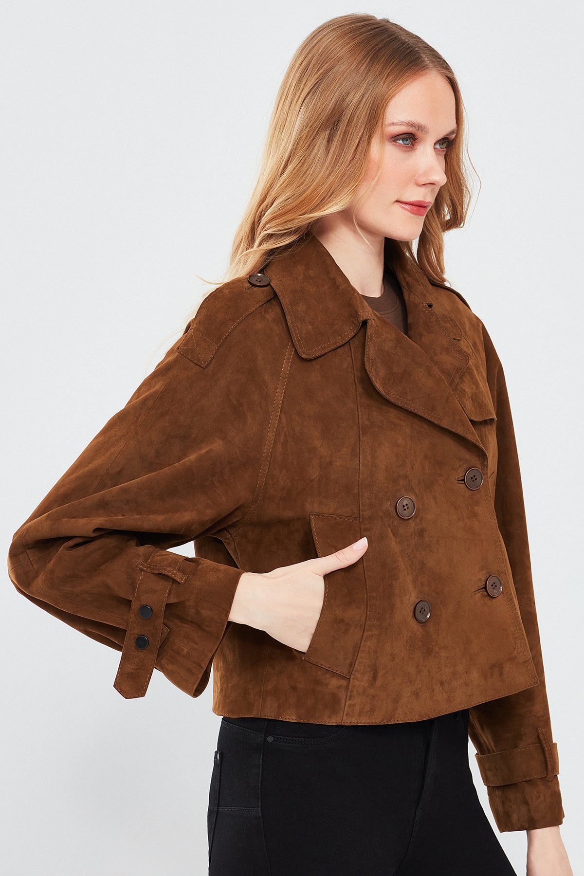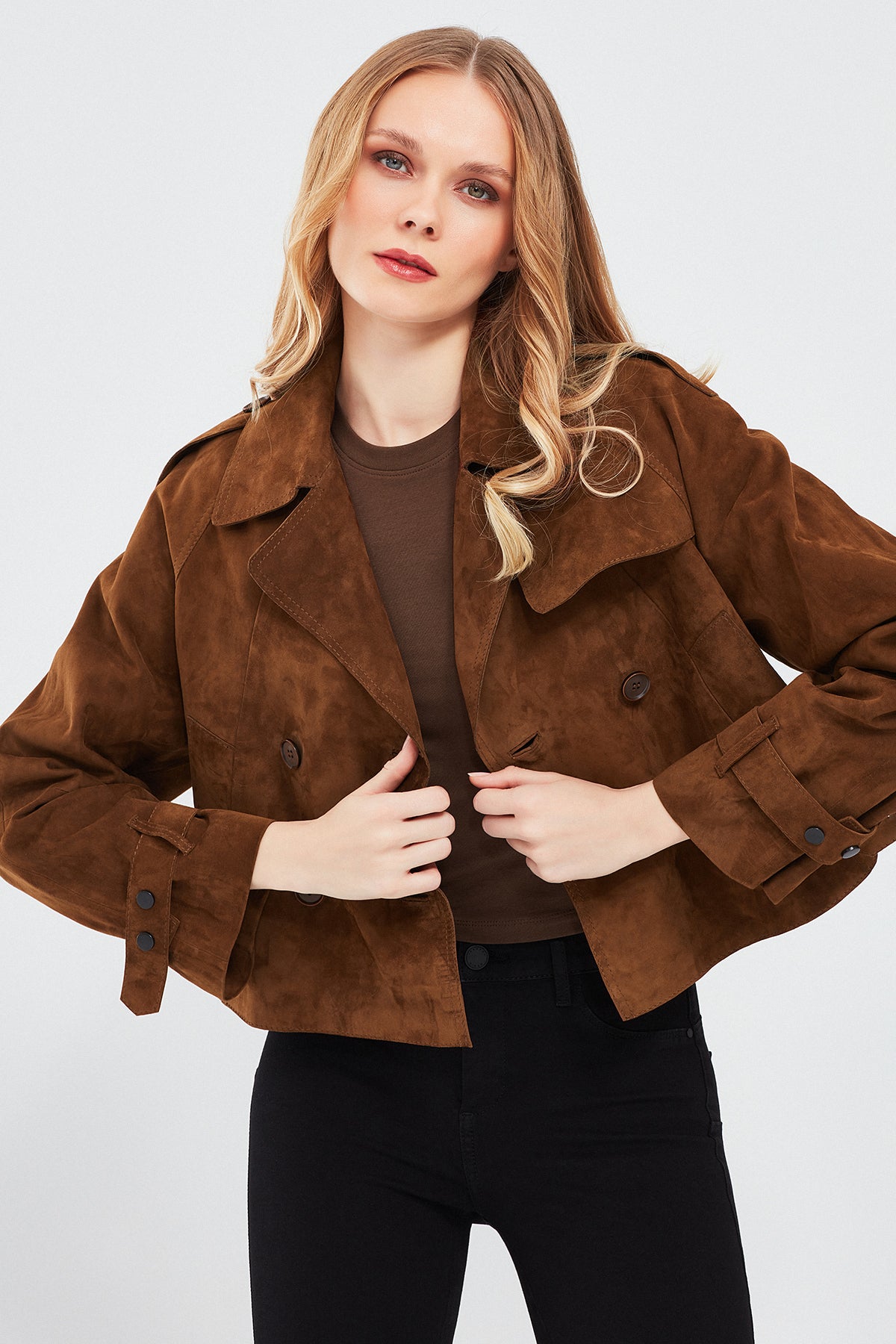 Derimod'un Tracy Kadın Kahverengi Kısa Süet Deri Montu, zarif ve şık bir görünüm sunar. Bu mont, yüksek kaliteli süet deri malzemesiyle üretilmiştir. Düğmeli kapama detayı ve kruvaze yaka ile tamamlanan bu model, modern ve şık bir tarz sunar. Kahverengi rengi, doğal ve sıcak bir ton içerir, kombinlerde kolaylıkla kullanılabilir. Süet deri malzemesi, montu yumuşak ve dokulu kılar, aynı zamanda şıklığı da vurgular. A form kalıbı, her bedene uyum sağlar ve rahat bir kullanım sunar. Tracy Kadın Kahverengi Kısa Süet Deri Montunun bileklerinde yer alan detaylar, monta ekstra bir şıklık katmaktadır. Bu detaylar, montu göz alıcı ve özgün kılar. Günlük kullanımdan özel günlerdeki kombinlerinize kadar geniş bir kullanım alanı sunar.