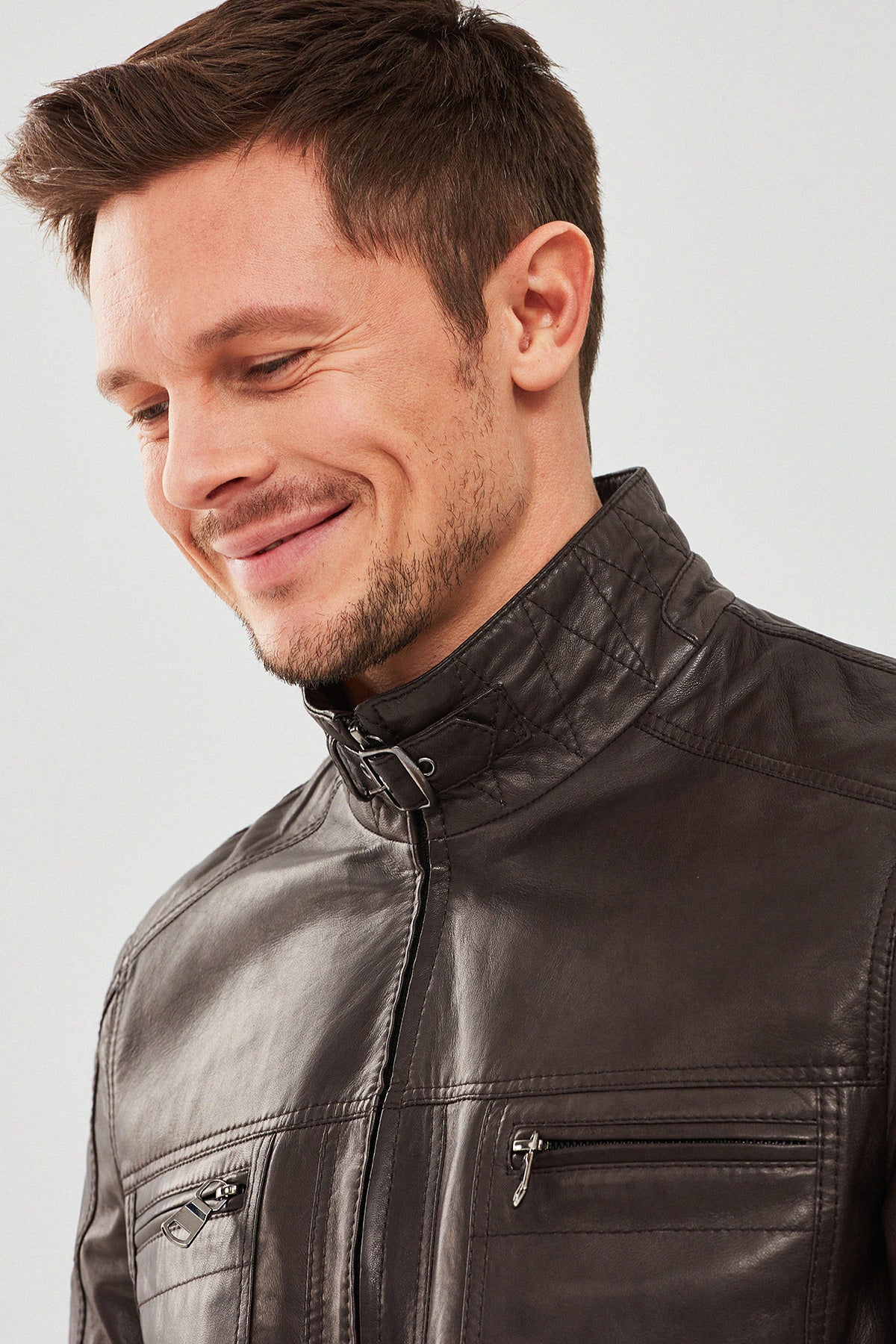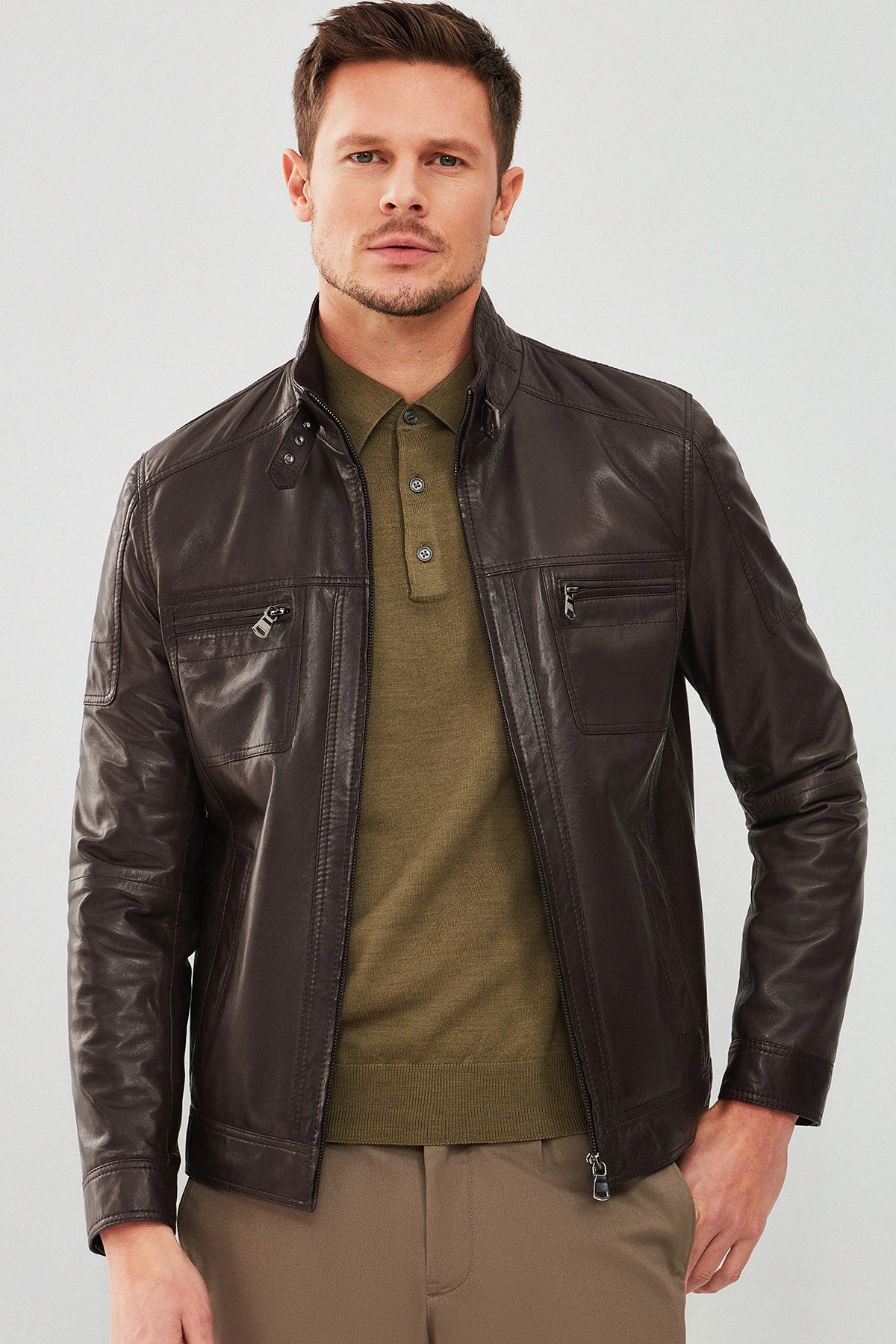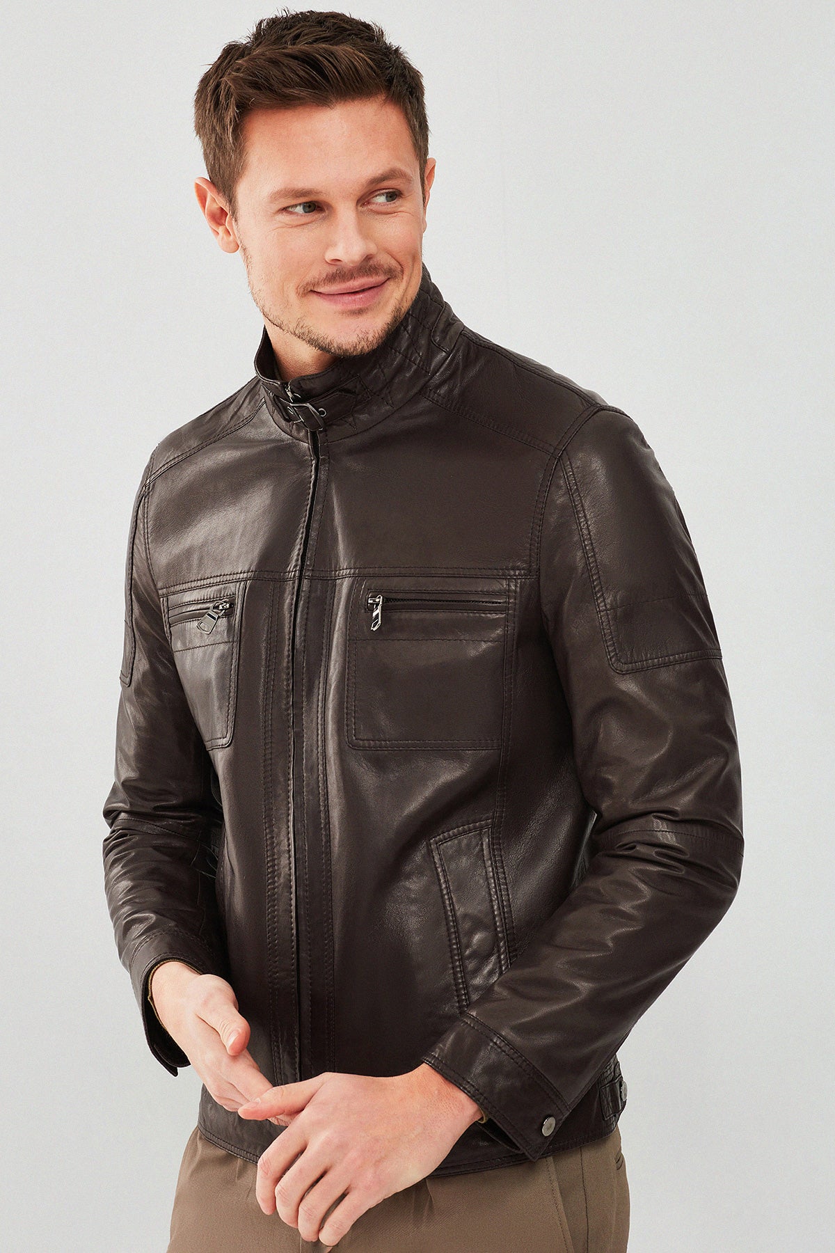 Derimod’un Zarif ve Şıklığı bir arada sunan Wade Erkek Kahverengi Slim-Fit Deri Mont ile tarzınızı konuşturun. Ürünün kodu: 23WGDD6462VE 22