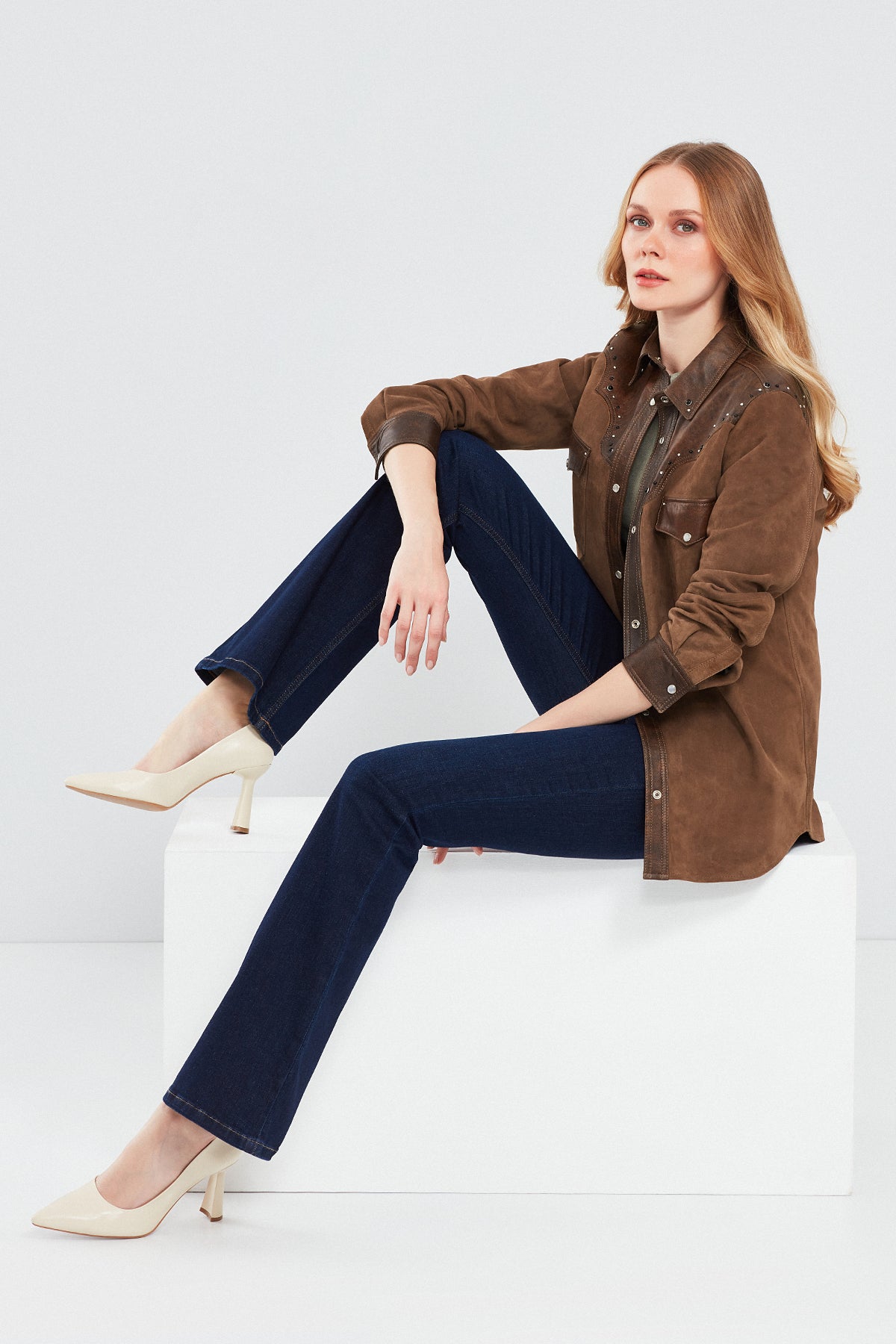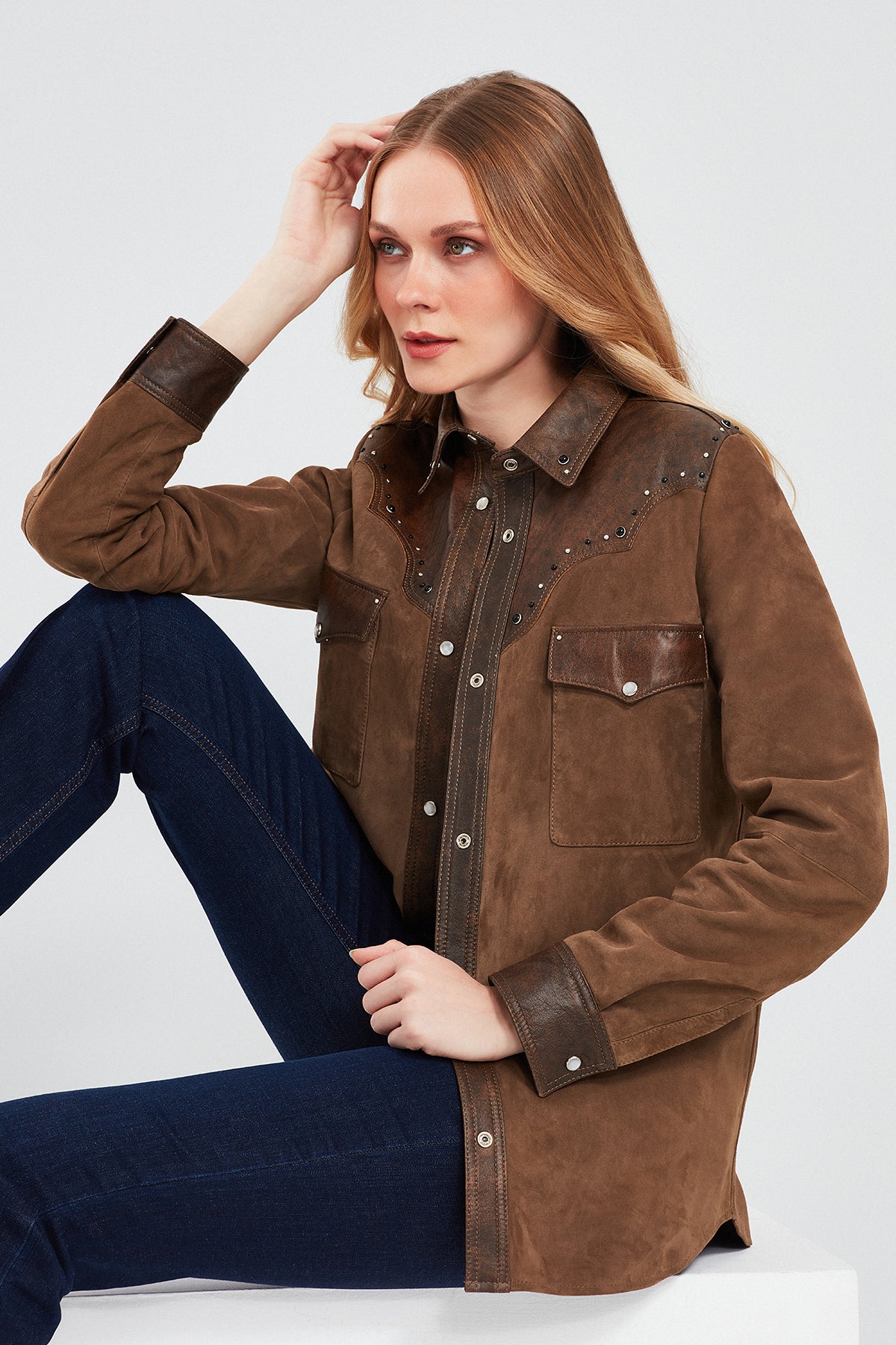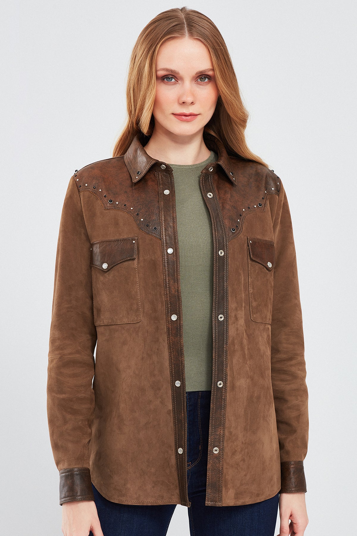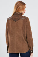Derimod'un Western Kadın Kahverengi Gömlek Tarzı Süet Deri Ceketi, batı tarzının modern yorumunu sunar. Özel süet deri malzemesi ve çıtçıtlı kapama detayıyla dikkat çeken bu ceket, gömlek tarzı yakasıyla da öne çıkar. Kahverengi rengi, western tarzının doğallığını ve sıcaklığını yansıtır. Ceketin regular/standart kalıbı, rahat bir giyim deneyimi sunarken, özel süet deri malzemesi kaliteyi ve dayanıklılığı temsil eder. Western Kadın Kahverengi Gömlek Tarzı Süet Deri Ceket, günlük kullanım için idealdir ve tarzınıza batı esintileri katmak isteyenler için mükemmel bir seçimdir. Derimod'un kalitesi ve şıklığı ile öne çıkan bu ceket, gardırobunuzun vazgeçilmezi olmaya adaydır.