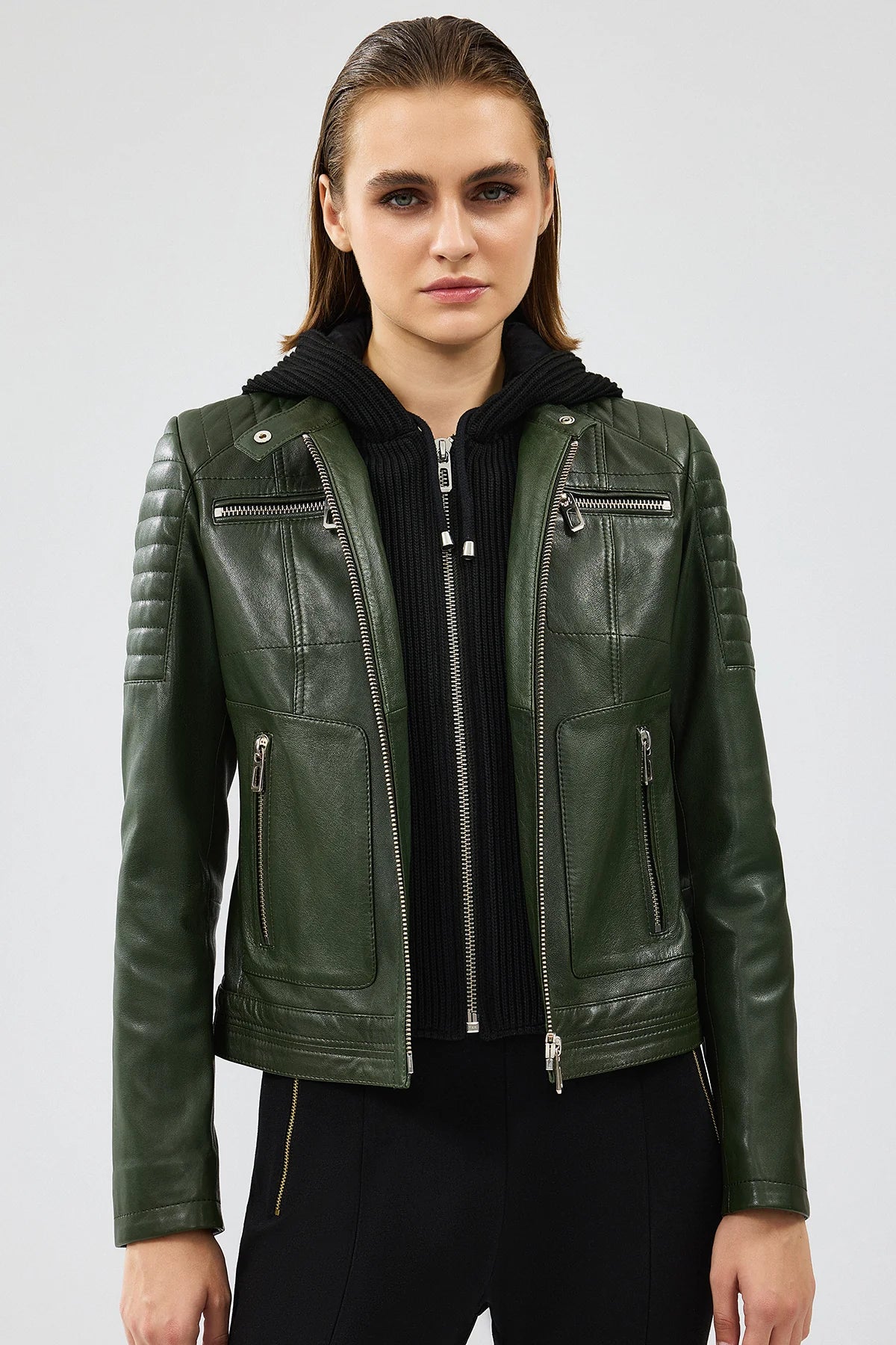 Derimod’un Zarifliği ve Şıklığı bir arada sunan Zoom Kadın Haki Kapüşonlu Kısa Deri Ceket ile tarzınızı konuşturun. Ürünün kodu: 24WGD5018VE P4